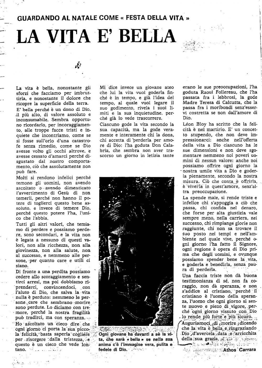 a seguito dell'alluvione del 4 novembre del '66, Athos scrive, manualmente, pensieri successivi a quei momenti considerando la presenza della Divina Provvidenza.